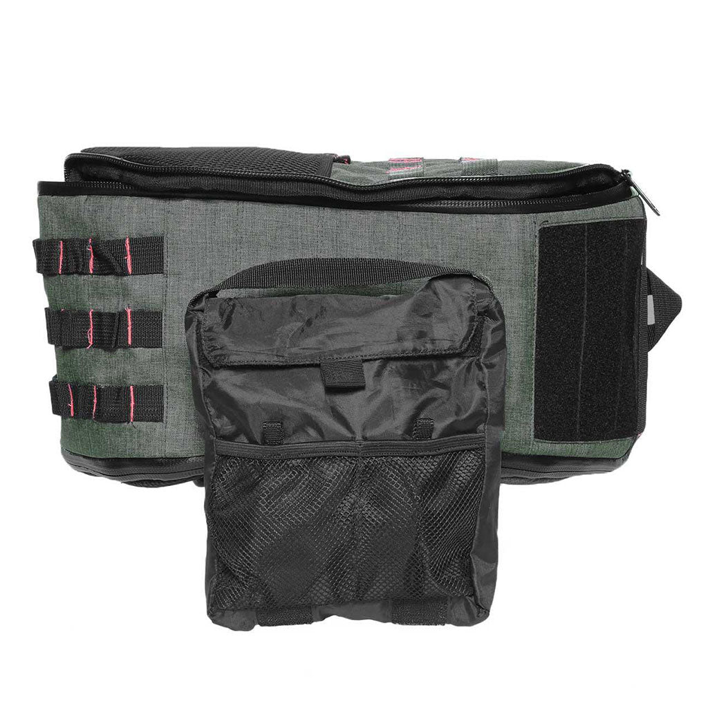 "The BrightBay™ “SK Slinger"" or “Skunk Killer Sling"" is an innovative military-style mid-sized cross-body sling designed to go on a stealth mission and safely store your personal, professional, and recreational necessities. This unisex-style bag features a very commodious, odor-absorbing main compartment designed to inconspicuously carry your desired consumables. In addition to the main compartment, the “SK Slinger"" is equipped with 5 additional zipper compartments as well as a removable, internal Velcro pouch for a smell-proof transfer.