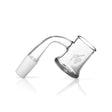 The flat bottom Honey Mug gives room for a balanced and smooth dab by allowing for temperature to rise evenly through the bottom surface of this classy-looking banger . The outer diameter of this piece sits at a standard 25mm, allowing for easy dabber access, and it holds a 3mm thickness that serves as a precautionary measure against clumsy users. This unit comes in both 90° and 45° angles banger with a classy frosted joint to top it off.