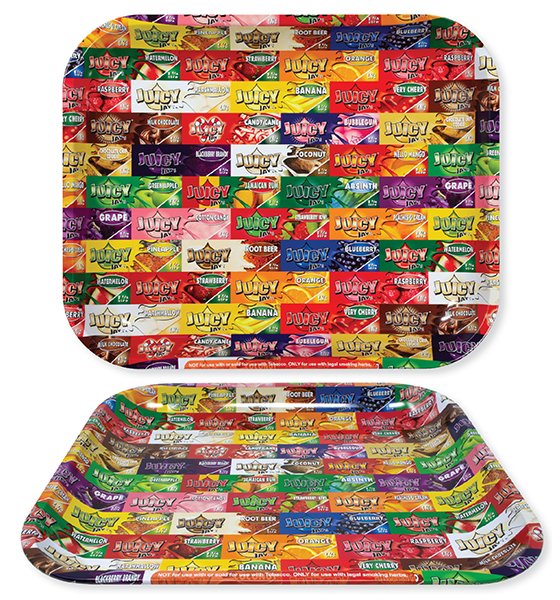 JUICY large metal rolling tray. • Sold Individually • TRAYS PER CASE: 25 • TRAY DIMS: L 13.4” X W 10.9” X H 1.2”